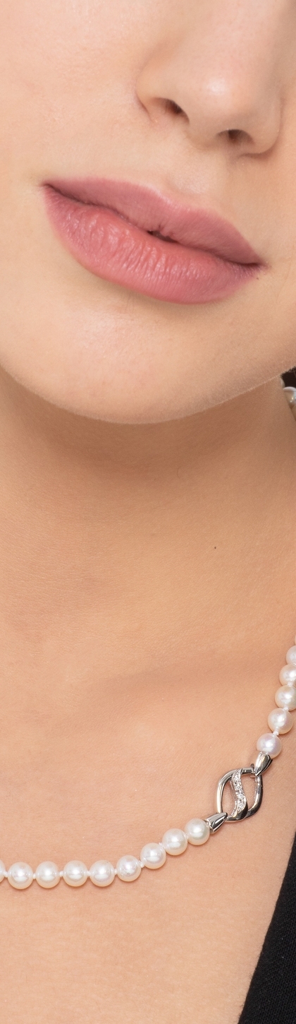 Collier de perles japonaises avec fermoir en or blanc et diamants