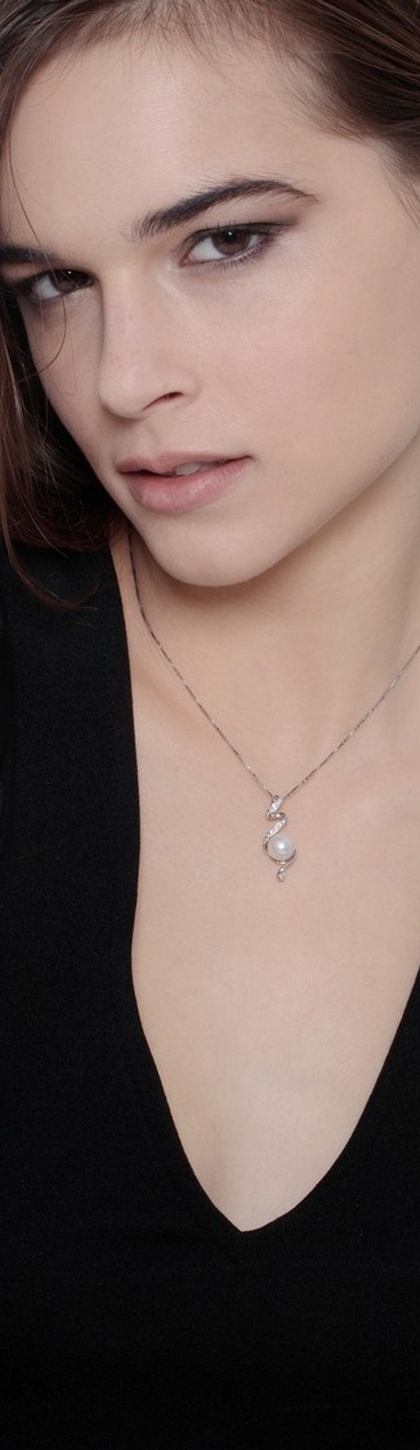 Collier en or blanc 18 carats avec pendentif de diamants et perle