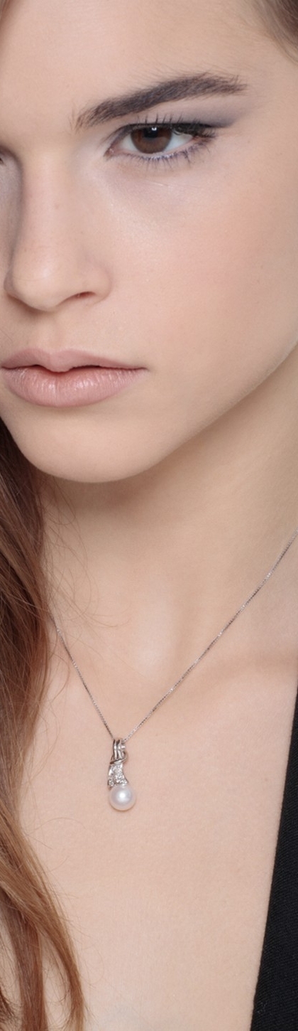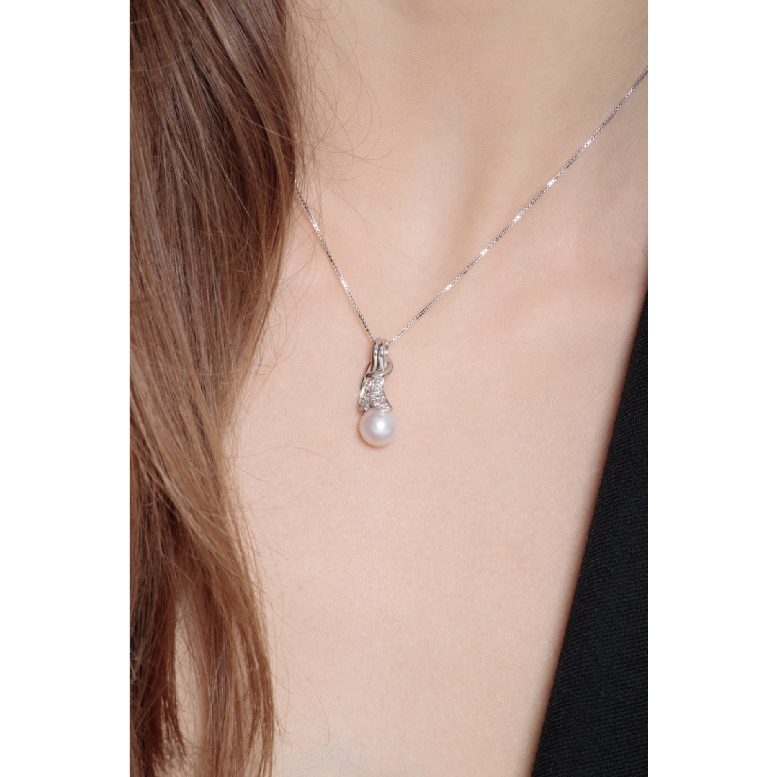 Collier en or blanc 18k avec diamant et perle naturelle cultivée