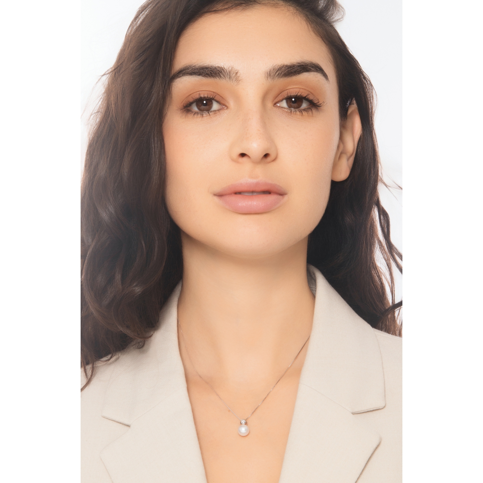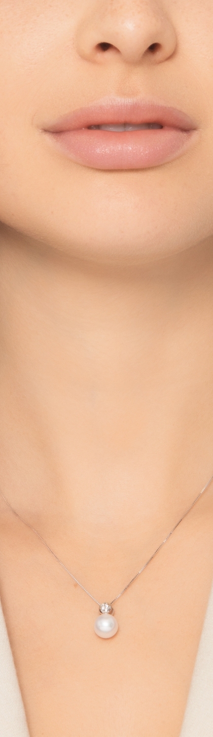 Collier en or blanc 18k avec perle naturelle et diamant brillant