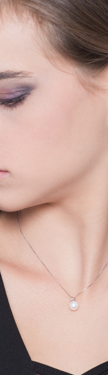 Collier en or blanc 18k avec une perle naturelle cultivée et diamant