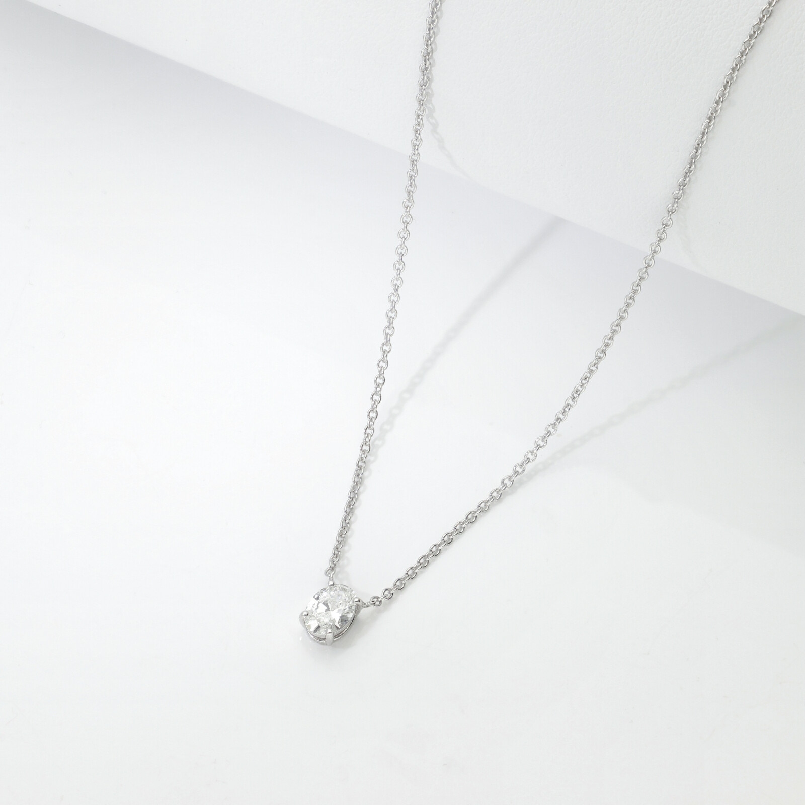 Collier Or Blanc 18k avec diamant ovale GIA 0.50 CT