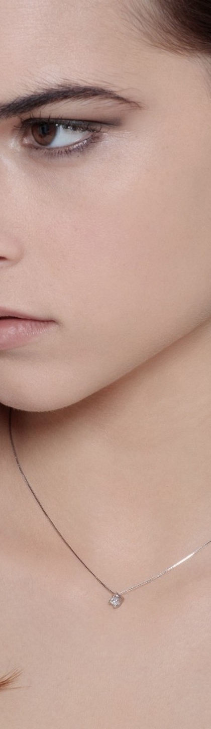 Collier pendentif solitaire en or blanc 18k avec diamant 0.10 ct
