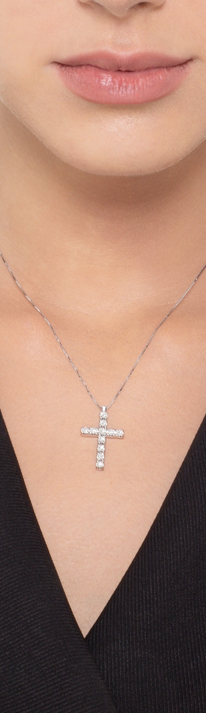 Collier en or blanc 18 carats avec une croix et des diamants, mesurant 24x15 mm