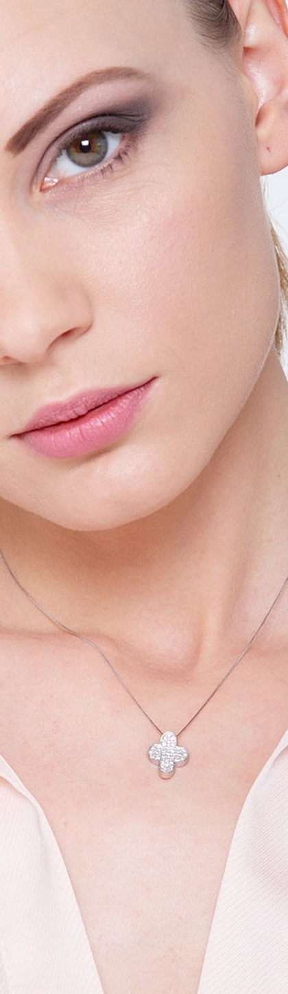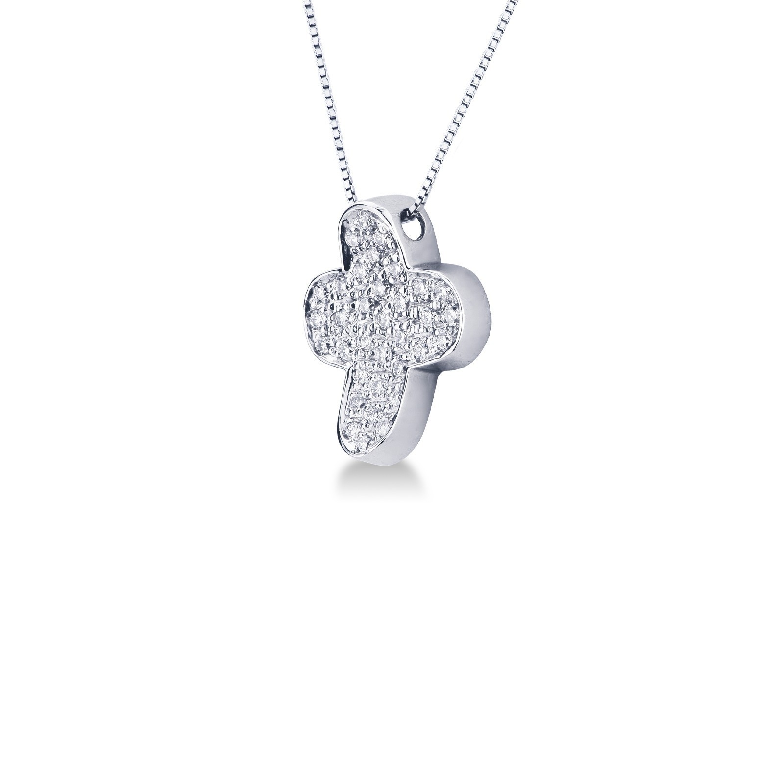 Collier en or blanc 18k avec croix bombée courbée et diamants