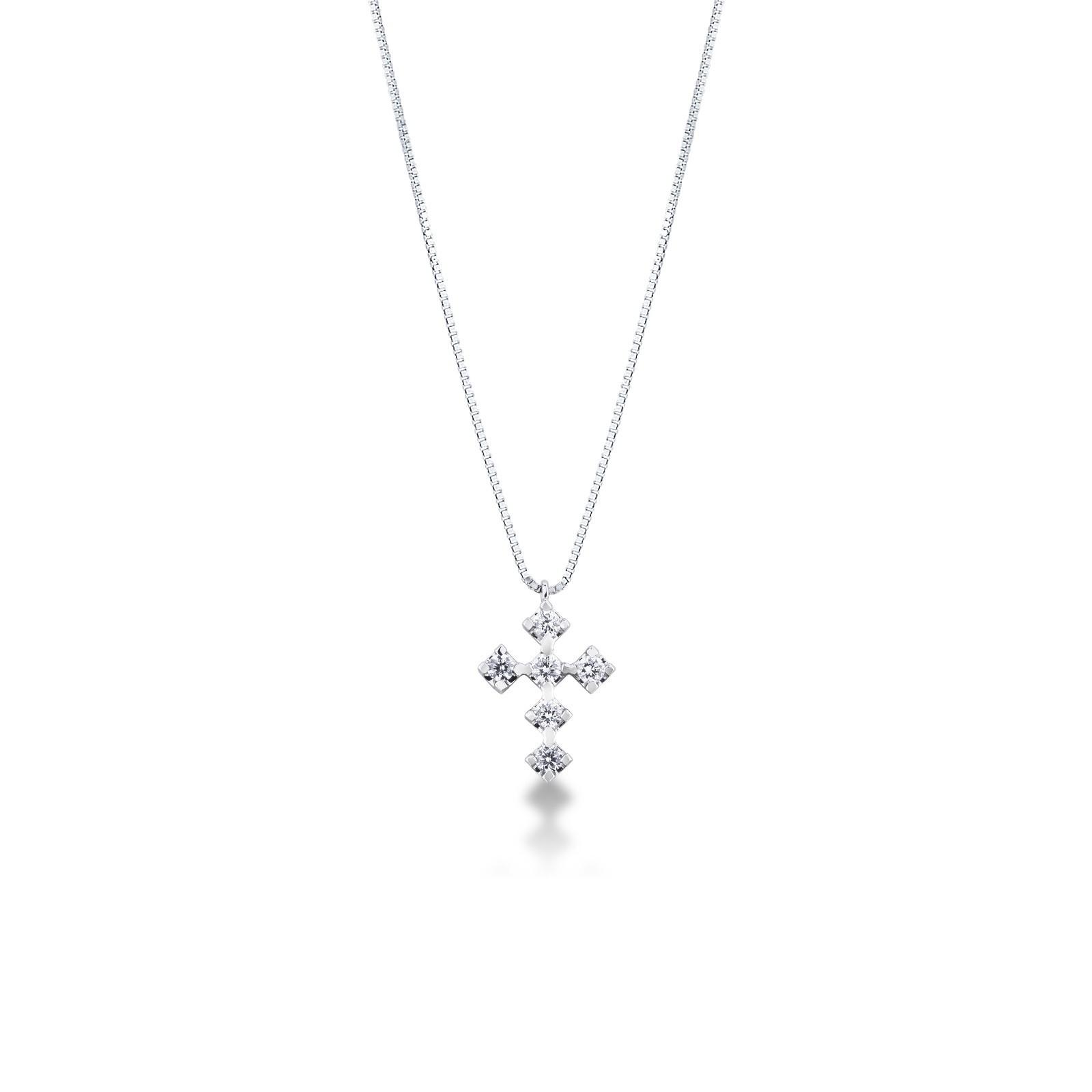 Collier en or blanc 18k avec croix carrée et diamants