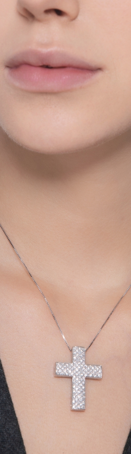 Collier en or blanc 18k avec pendentif croix en diamants