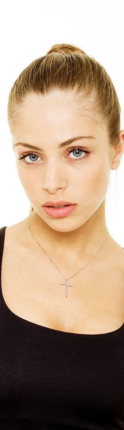 Collier en or blanc 18k avec pendentif croix serti de diamants