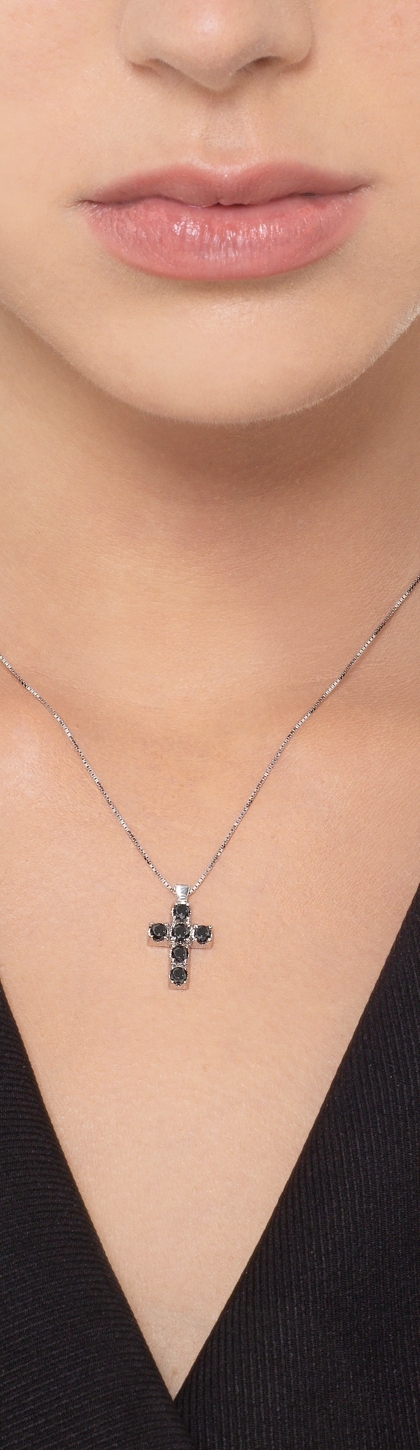 Collier pendentif croix homme en or blanc 18k et diamants noirs