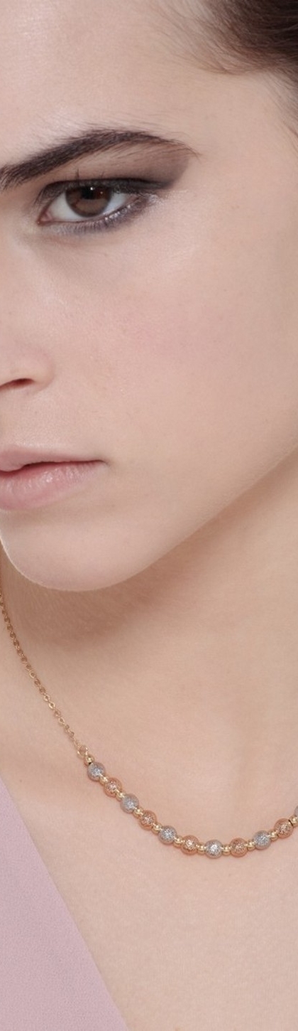 Collier avec des billes de diamants en or blanc, jaune et rose 18k