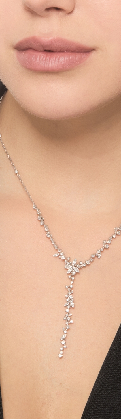 Collier en y or blanc avec cascade de diamants
