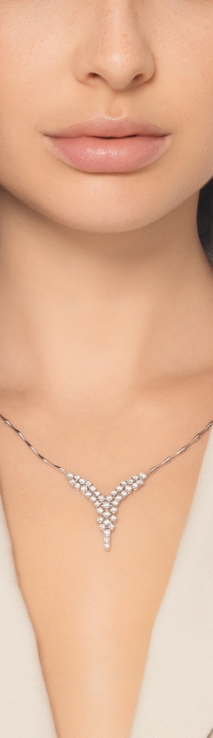 Collier en Y semi-rigide en cascade en or blanc 18k avec diamants