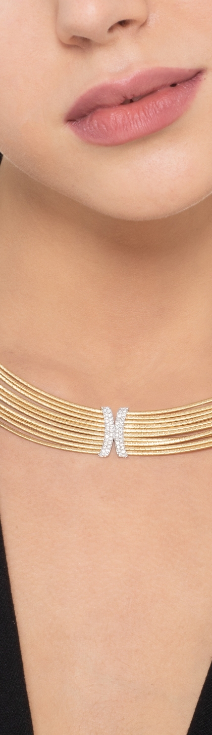 Collier ras du cou multi-rangs en or jaune et blanc 18k avec diamants