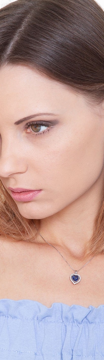 Chaîne en or blanc 18k avec pendentif cœur en saphir et diamants