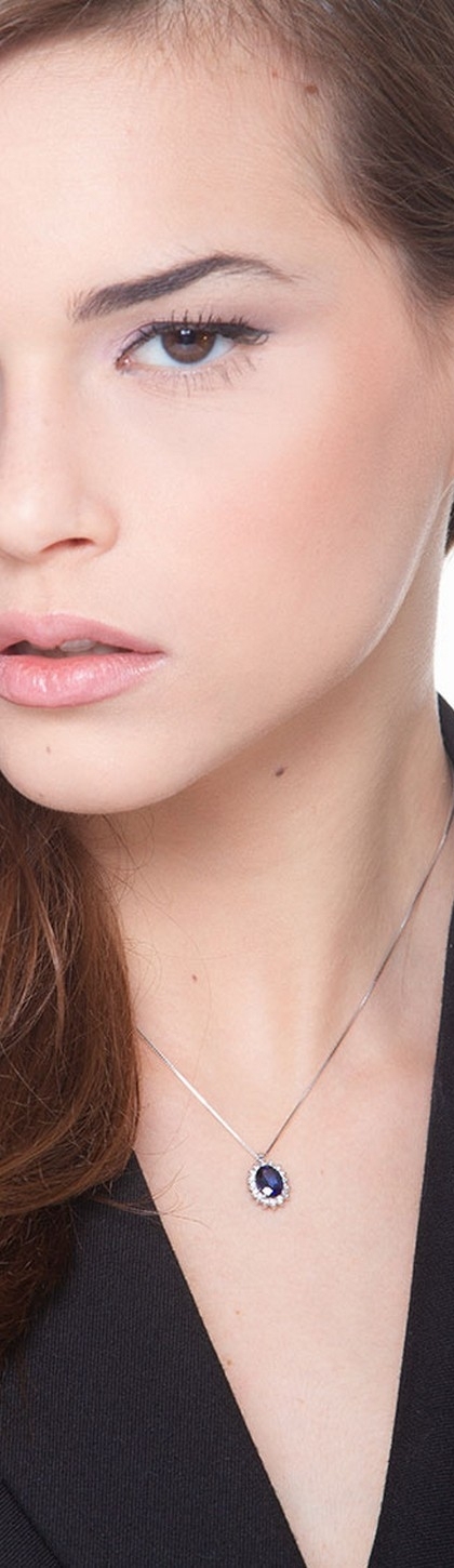 Collier en or blanc 18 carats avec saphir bleu et diamants