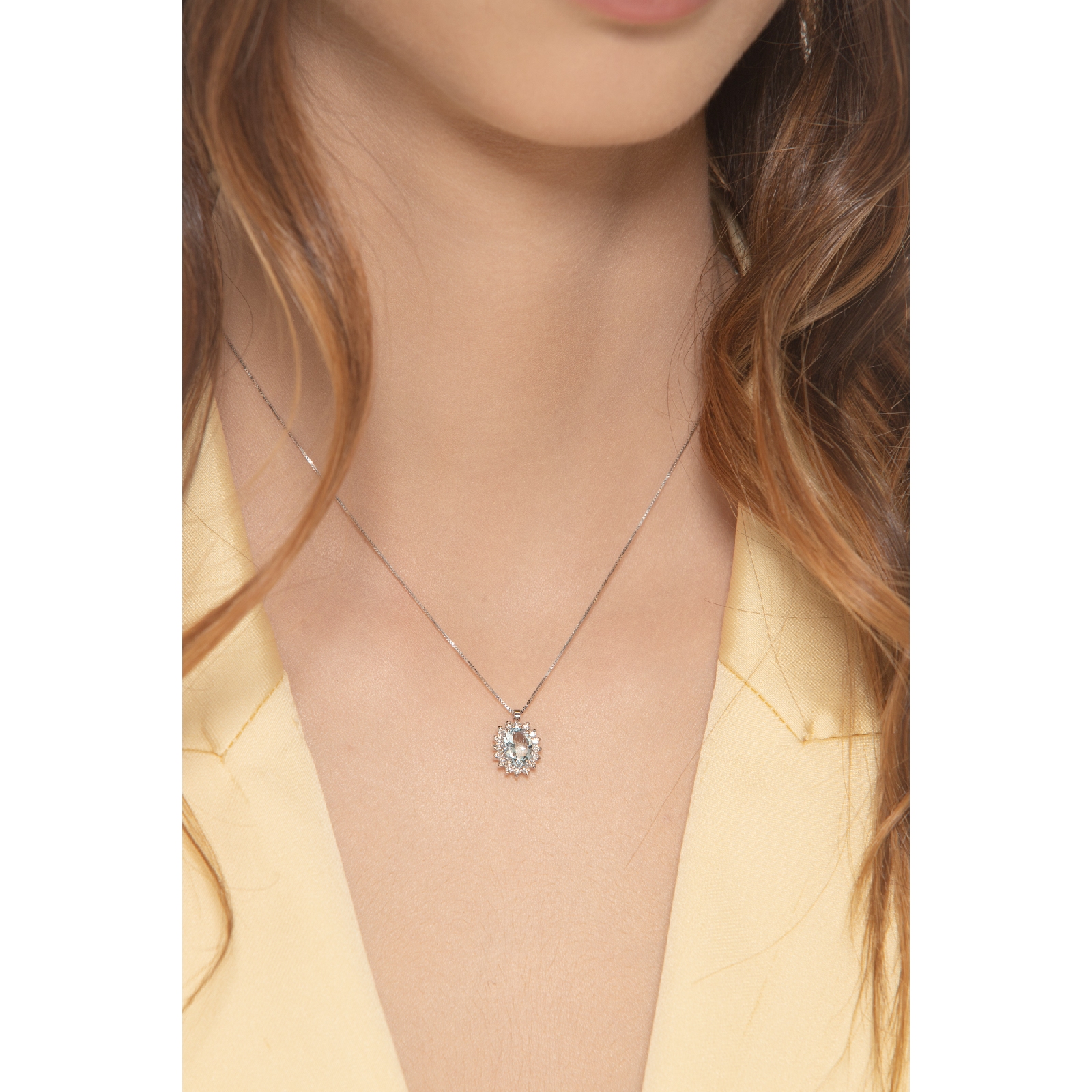Collier en Or Blanc 18k avec Aigue-Marine Ovale et Diamants