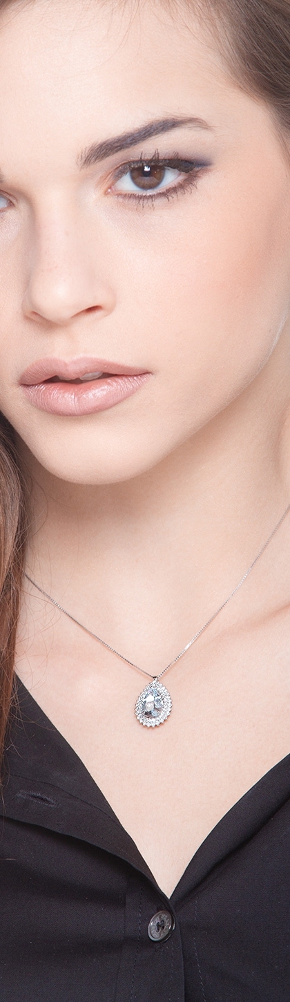 Collier en or blanc 18k avec aquamarine et diamants