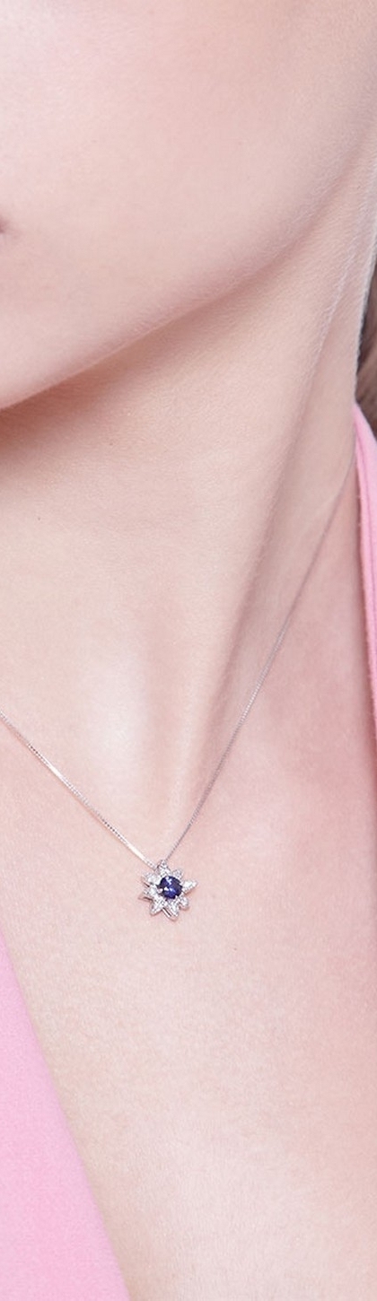 Collier en or blanc 18K avec étoile en saphir bleu et diamants