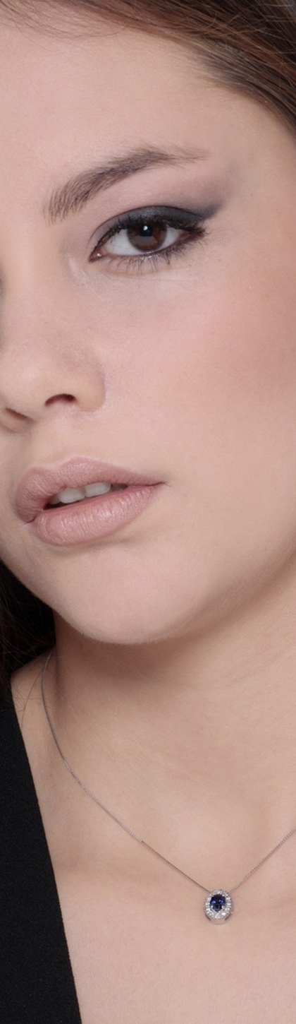 Collier en or blanc 18K saphir bleu et diamants latéraux