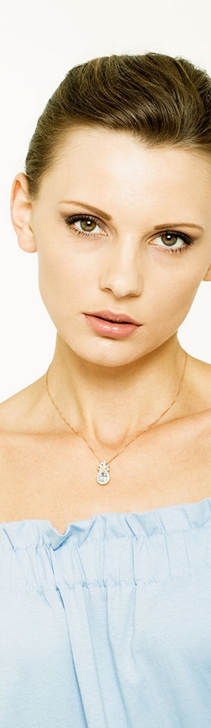 Collier en or rose 18 carats avec diamants et aigue-marine en forme de goutte