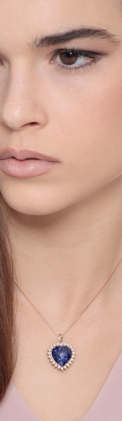Collier en or rose 18 carats avec saphir à cœur et halo de diamants
