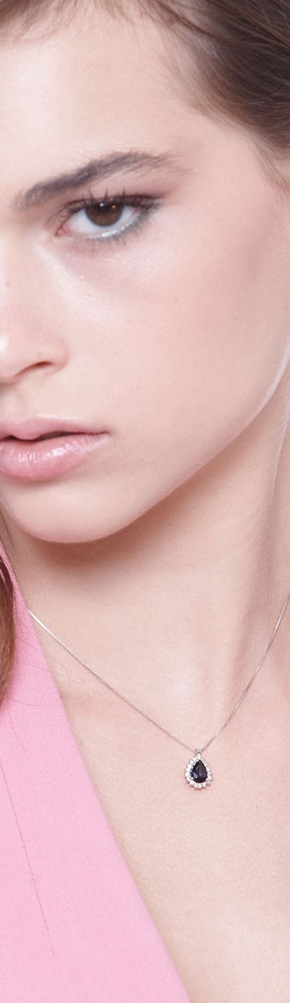 Collier Goutte Bleue Or Blanc 750 saphir et diamants