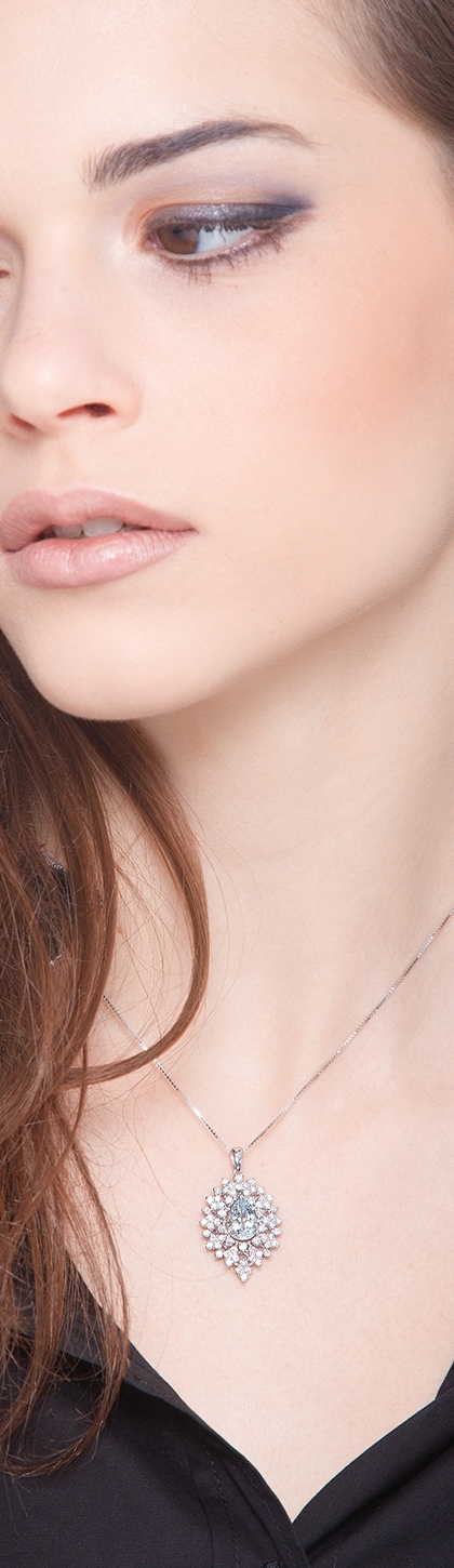 Collier pendentif diamants aigue-marine or blanc 750