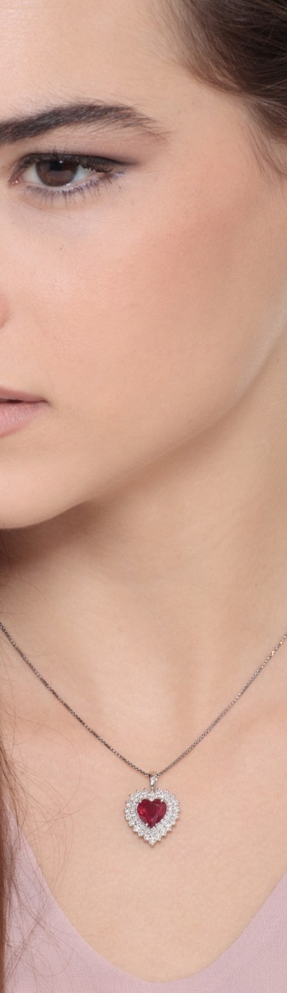 Collier raffiné avec rubis cœur entouré de diamants en or blanc 18k