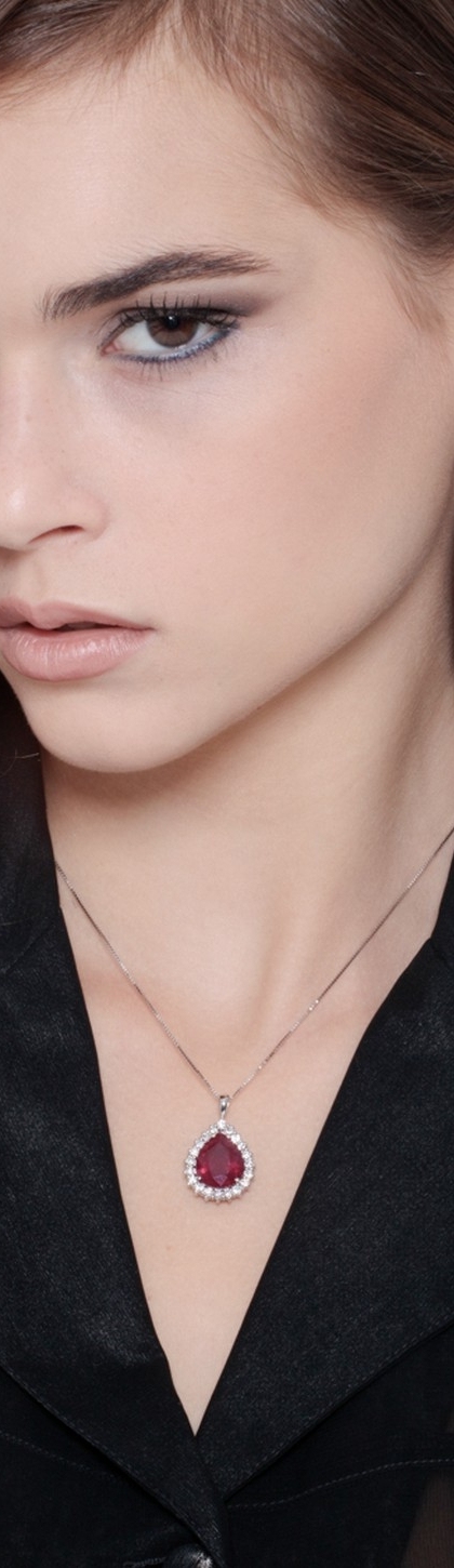 Collier raffiné en or blanc 18k avec rubis et diamants