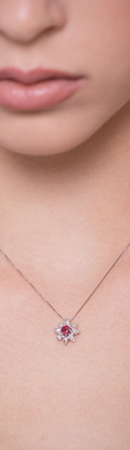 Collier Étoile en Or Blanc 18k avec Rubis et Diamants