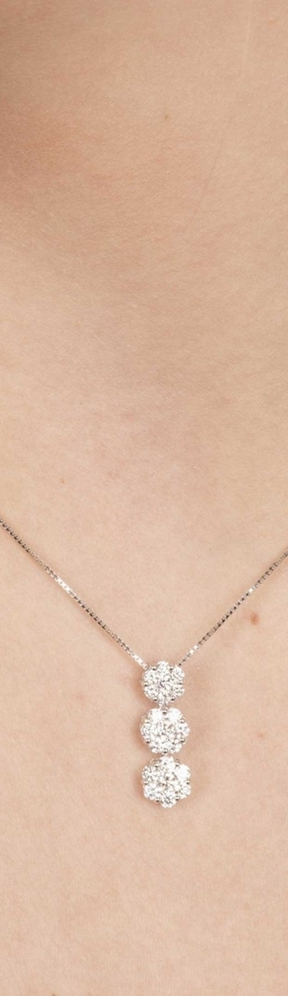 Collier à 3 pendentifs illusion en or blanc 18 carats avec diamants