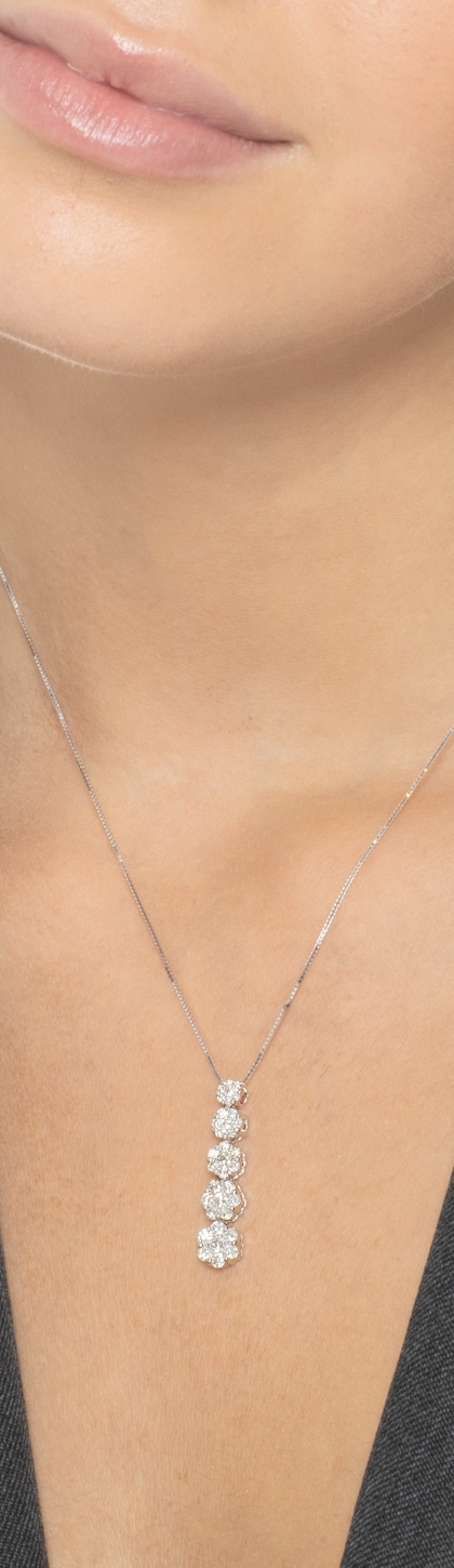 Collier en or blanc 18 carats avec un pendentif à 5 fleurs