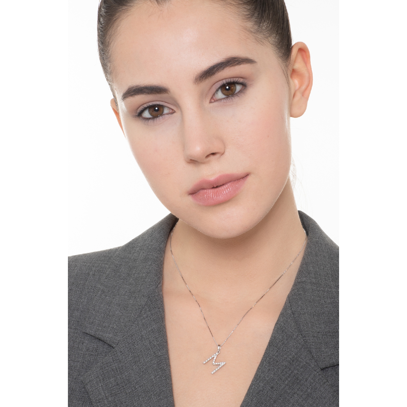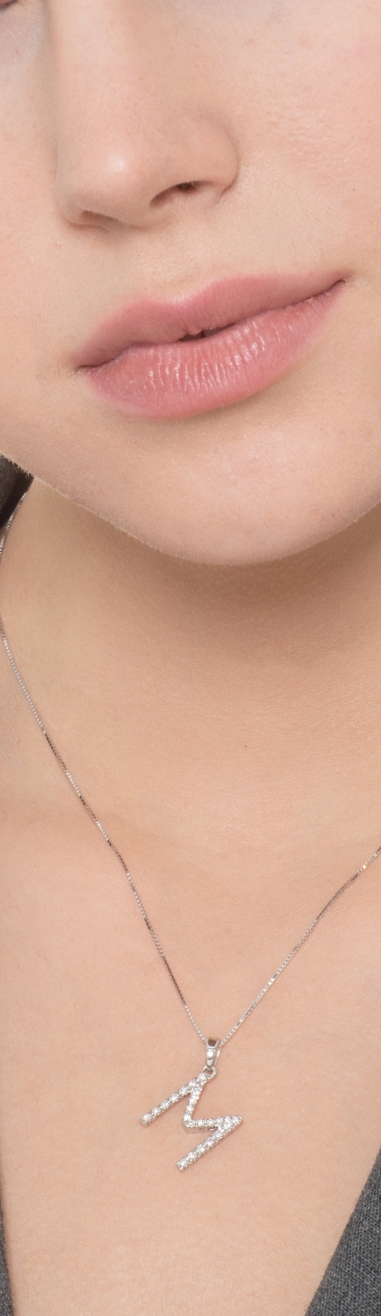 Chaîne en or blanc 18k avec pendentif lettre M et diamants
