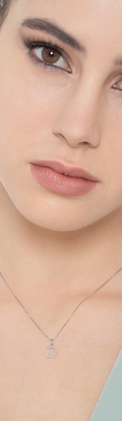 Collier avec la lettre D en or blanc 18K et diamants