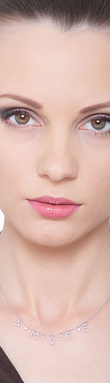 Collier avec lettres AMORE en or blanc 750 et diamants