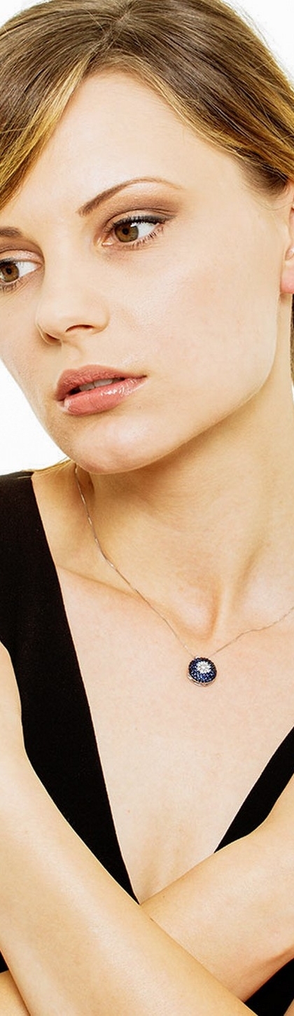 Collier avec pavé de saphirs bleus et diamants en or blanc 18k