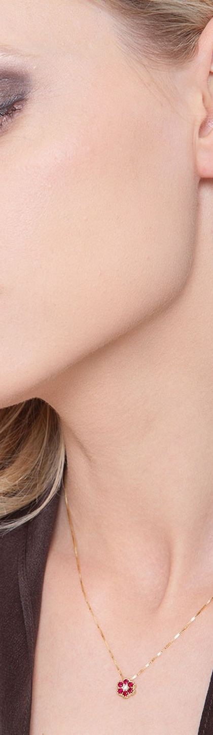 Collier avec pendentif fleur en or jaune 18k avec diamant et rubis