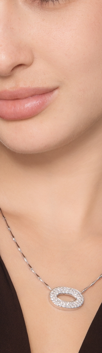 Collier avec pendentif ovale pavé en or blanc et diamants