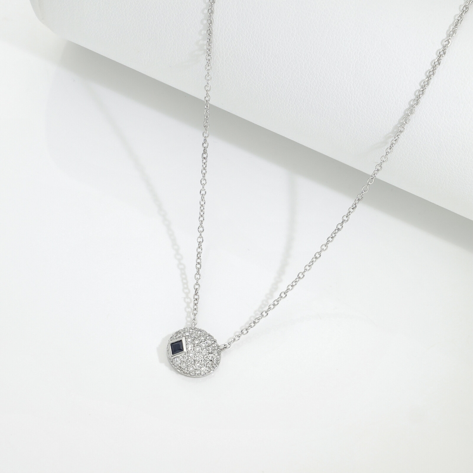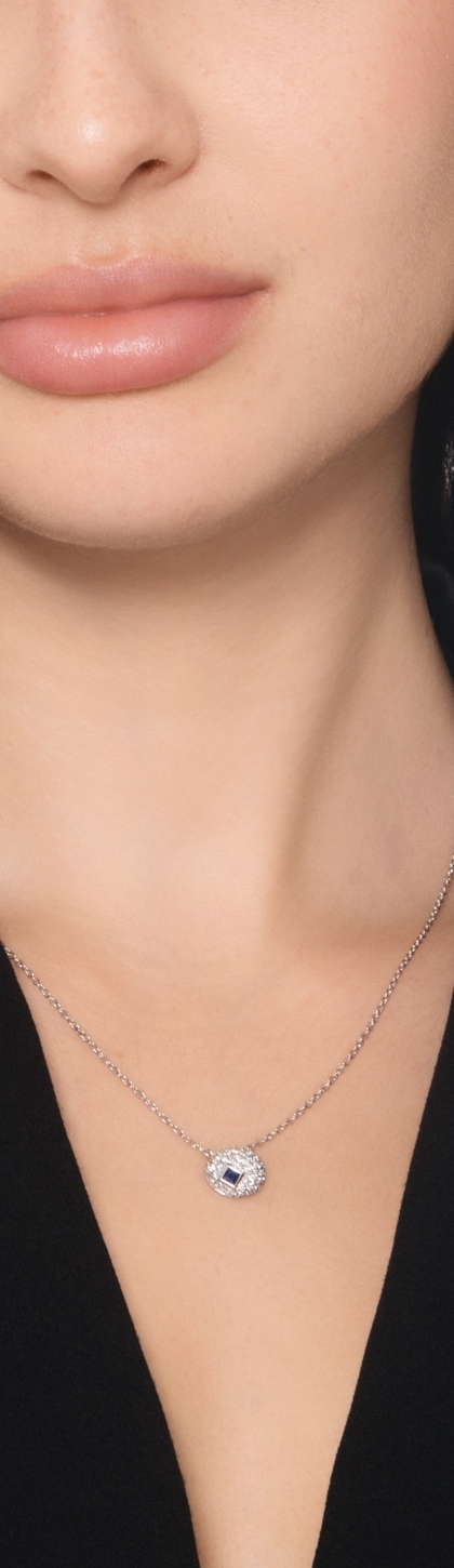 Collier avec pendentif pavé ovale en or blanc, saphir et diamants
