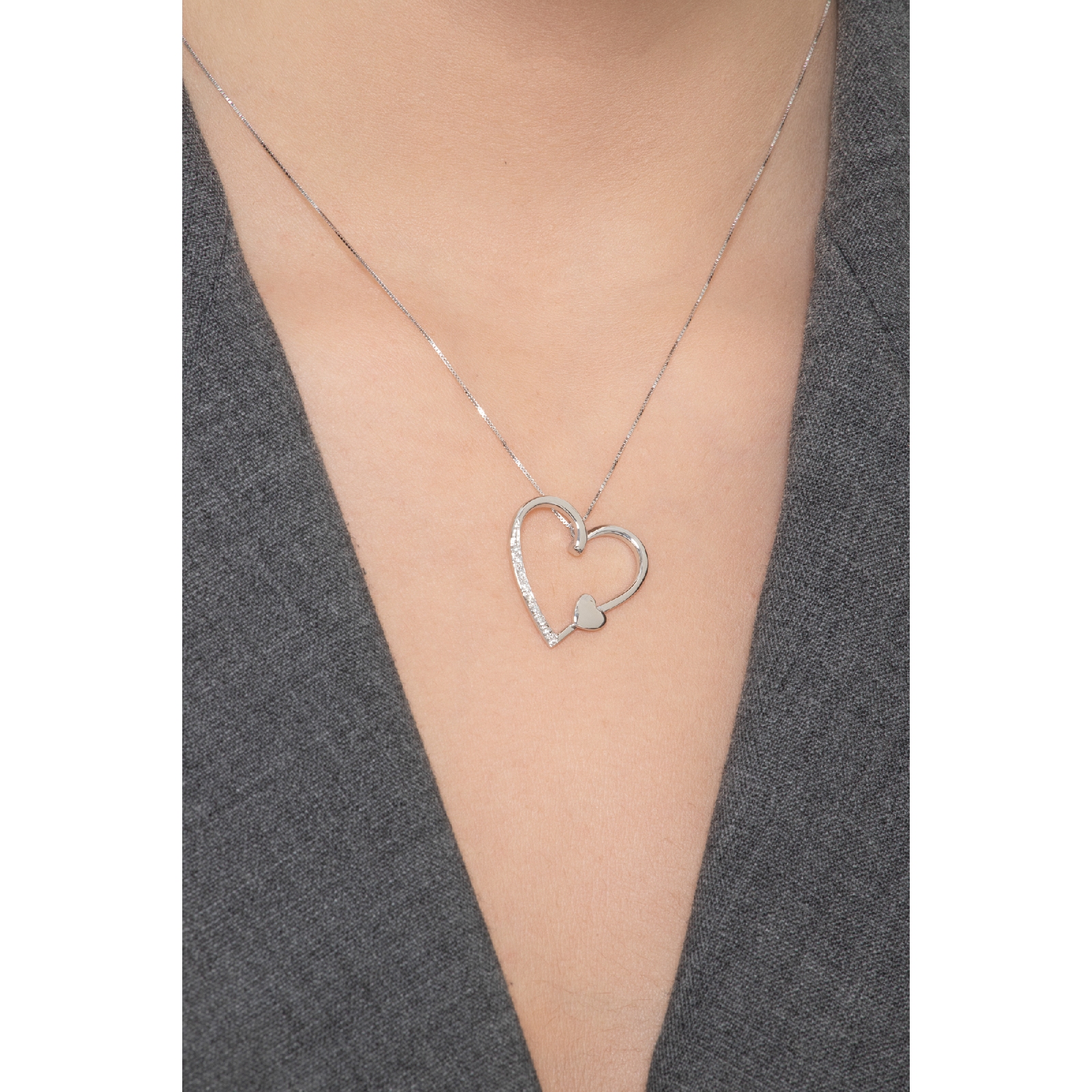 Collier Cœur Diamants Or Blanc 750