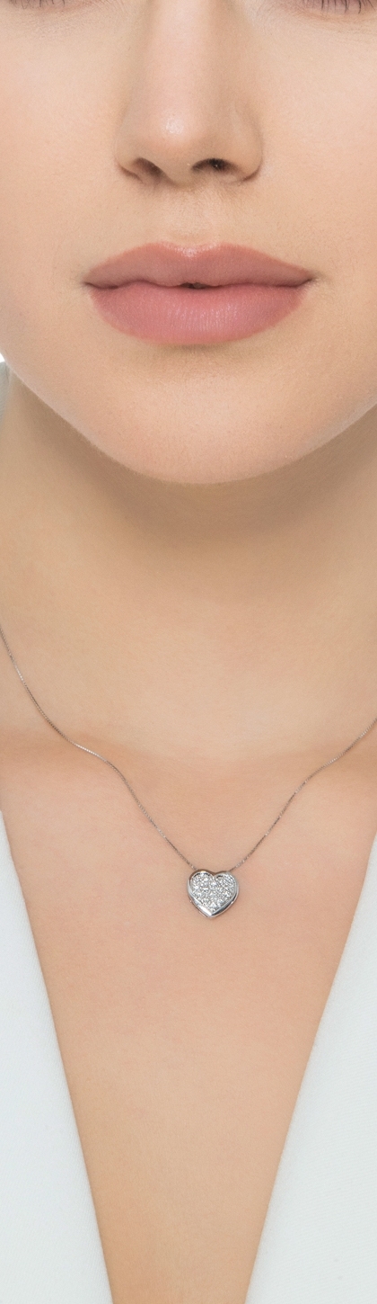 Collier coeur en or blanc 18 carats avec diamants