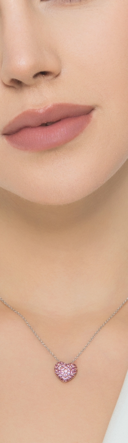 Collier en or blanc 18 carats avec cœur saphirs roses