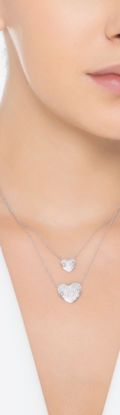 Collier en or blanc 18 carats avec deux cœurs en diamants