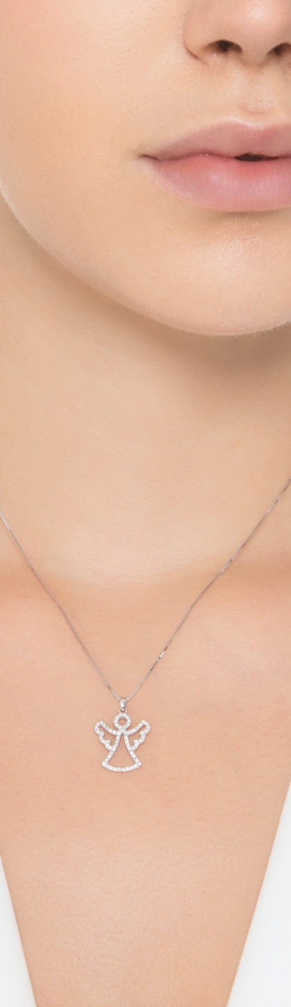 Collier en or blanc 18 carats avec pendentif ange en diamants