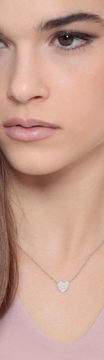 Collier en or blanc 18 carats avec pendentif cœur pavé de diamants