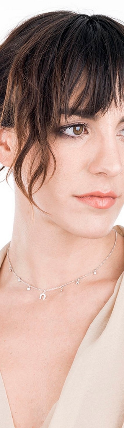 Collier en or blanc 18 carats avec pendentif fer à cheval et diamants