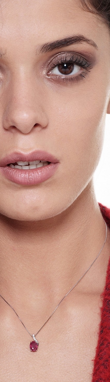 Collier en or blanc 18 carats avec pendentif rubis et diamants