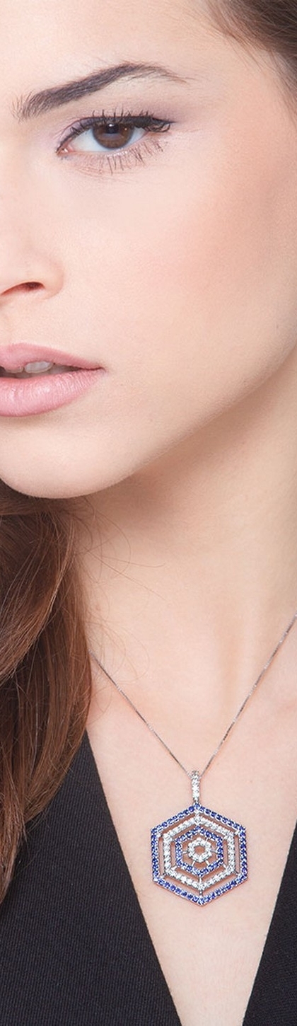 Collier en or blanc 18 carats avec saphirs bleus et diamants