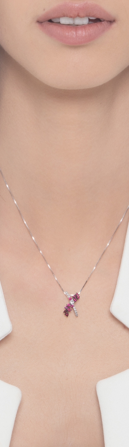 Collier en or blanc 18 carats croisé orné de rubis et diamants