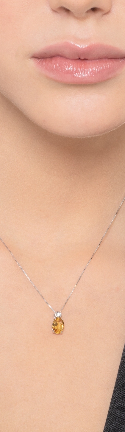 Collier en or blanc 18k avec citrine 8x6 mm et diamant